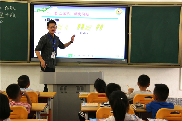 本次汇报课,14名数学教育专业实习生全部参与,他们分别在指导老师的指点下,反复进行课前教学设计的修改与试课。教学中,每一位实习生都别具特色,各有千秋。熟练运用多媒体进行辅助教学,关注学生的学习过程,善于激励和表扬孩子,充分地调动了学生的积极性等,每一节课都充满激情、洋溢热情、课堂氛围轻松愉悦。同学们认真倾听,乐于参与课堂互动,积极发言。实习教师课堂中教态大方得体,语言精简而又幽默,出色的表现受到了孩子们的喜爱,指导老师们的认可及在场听课老师们的肯定。