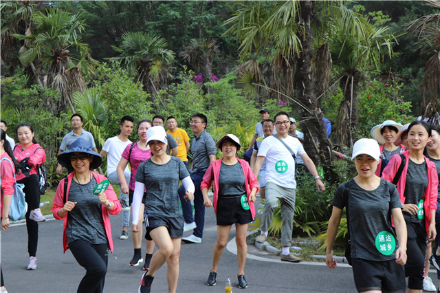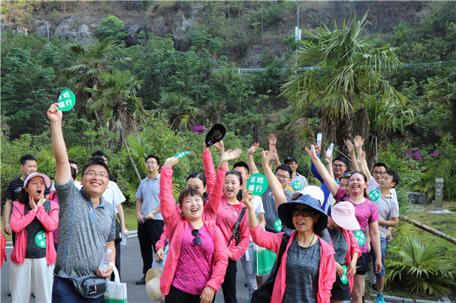 山花似火,碧水蓝天。五月的笃山攀岩公园风情万种。此次户外拓展主要以徒步为主,参与活动的员工分作“百姓银行”、“通达城乡”、“服务三农”、“普惠金融”四个小队,在主持人的带领下做了系列热身运动,整点行装,大家从停车场出发,首先映入眼帘的便是一段钢铁栈道。初夏的阳光铺满崎岖的山道,蜿蜒的队伍伴着阵阵欢笑在清风里肆意飘荡。拾级而上,崖壁旁陡峭的山路如何也抵挡不了大家满腔的热情,那种“山登绝顶我为峰”的豪情,尽显新时代农信人的风范。及至山顶停车场,大家齐聚一堂,一张张红扑扑的脸蛋儿上漾开了自豪的笑靥。